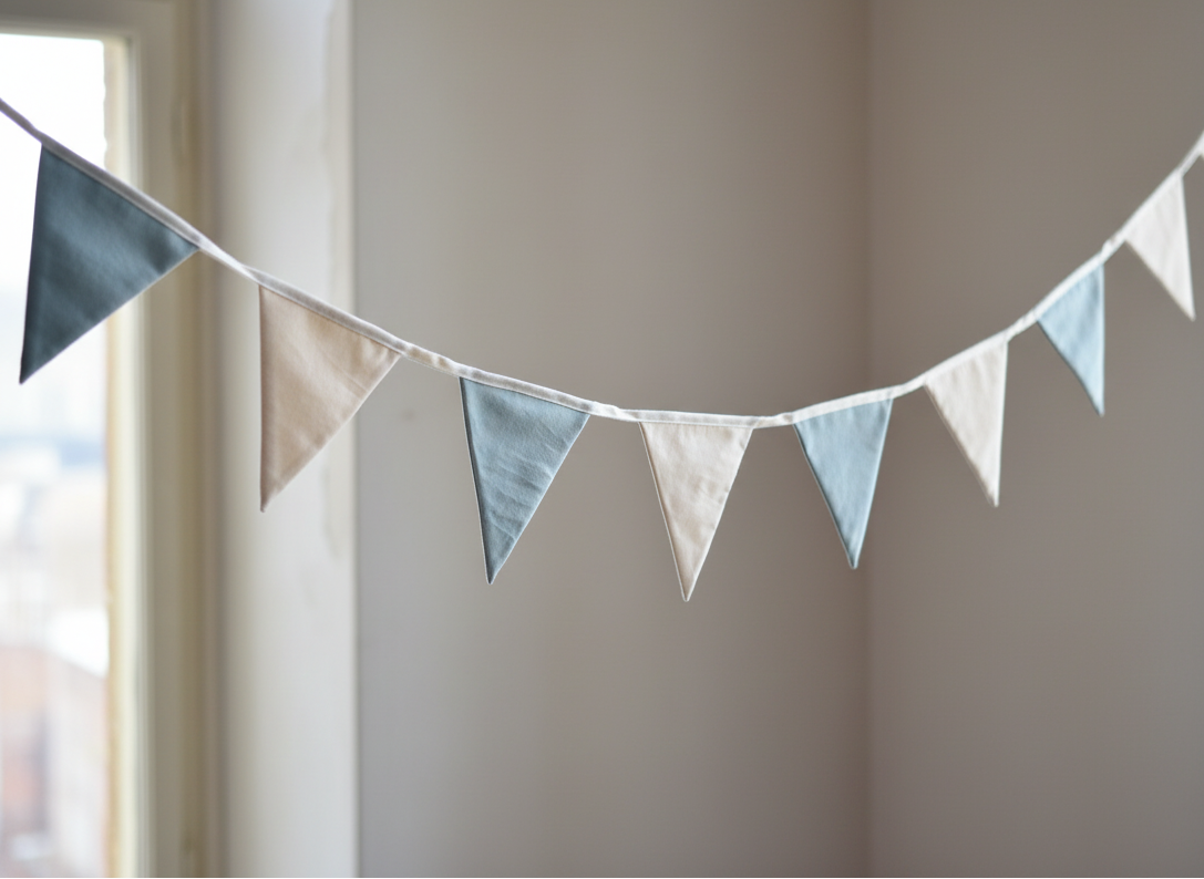 Roku darbs kokvilnas virtene ar 11 karodziņiem – koša, rotaļīga un sirsnīga dekorācija, kas piešķir svētku sajūtu jebkurā dienā! Izgatavota no kvalitatīva kokvilnas auduma, šī virtene ir lieliski piemērota bērnistabai, dzimšanas dienas ballītēm, fotosesijām vai vienkārši mājīguma radīšanai mājās.